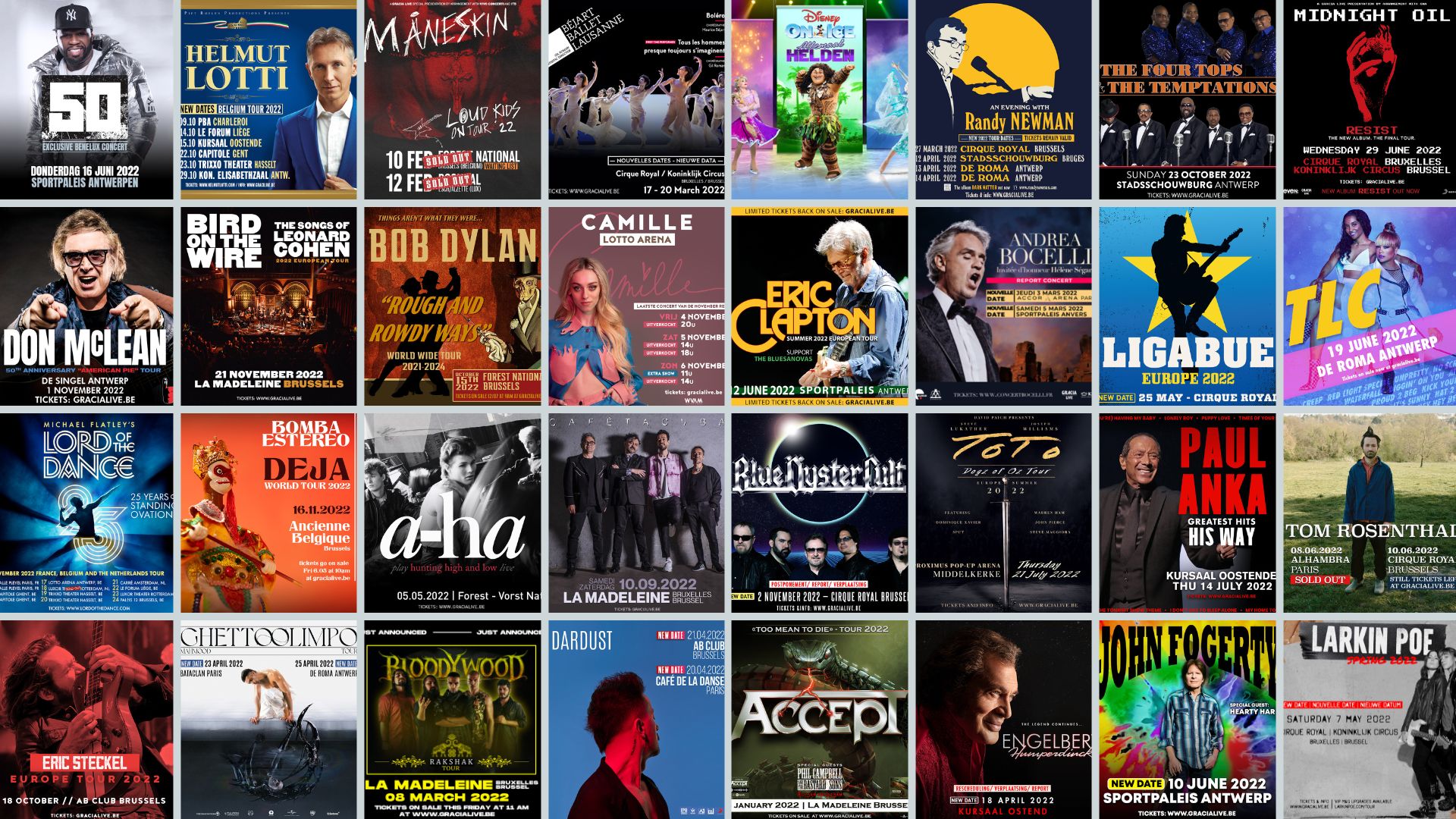 Concerten zoals o.a.: Adele, Céline Dion, Bob Dylan, Neil Young, Paul Simon, Duran Duran, Eros Ramazzotti, Laura Pausini, Seal, Jamiroquai, Cat Stevens, Dream Theater…